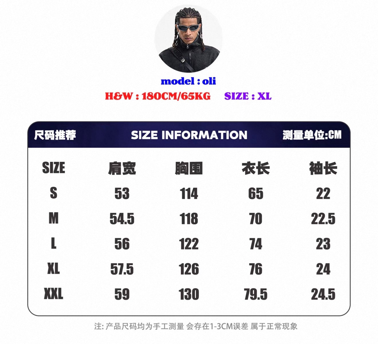 Size guide - 180cm , 65kg wearing XL